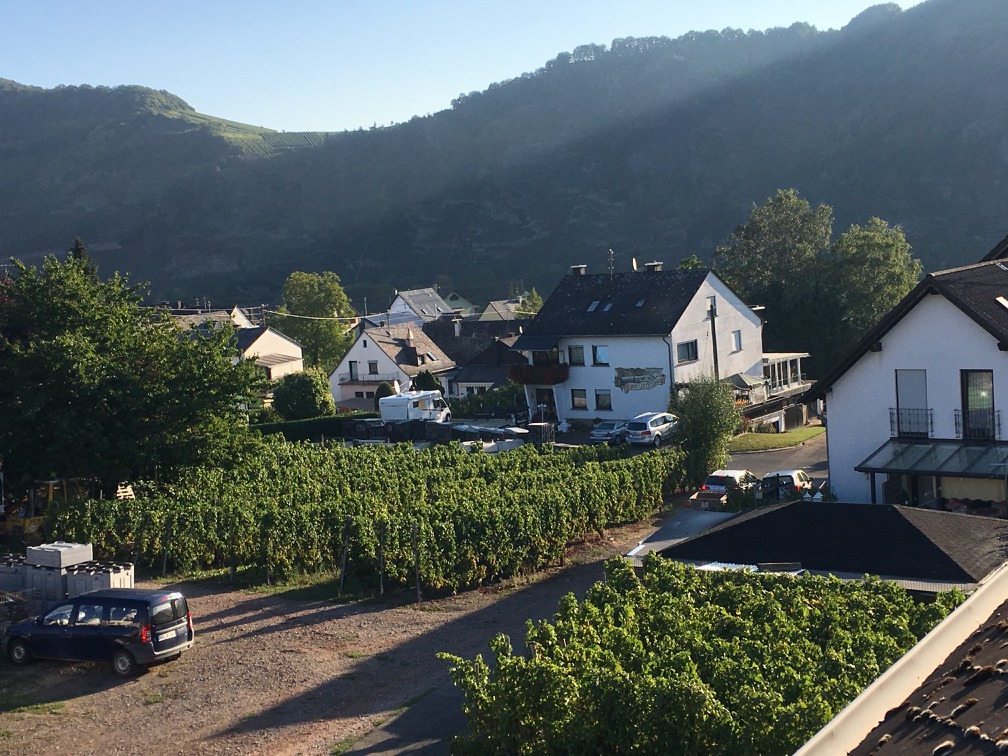Det er blevet til to ture. Første gang overnattede vi privat i Piesport hos nogle vinavlere. Ja, jeg tror faktisk, at alle der bor i området har deres egen lille produktion af vin af vinranker på skråningerne.