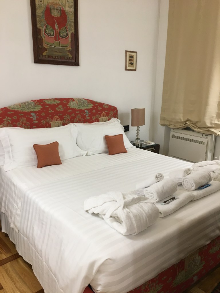 Min mor og jeg skulle bare finde noget billig overnatning centralt i Rom til en forlænget weekend. På hotels.com dukkede nogle billeder op med en dejlig tagterrasse og en pris til 1295 kr pr nat, og jeg slog til uden at undersøge nærmere.
