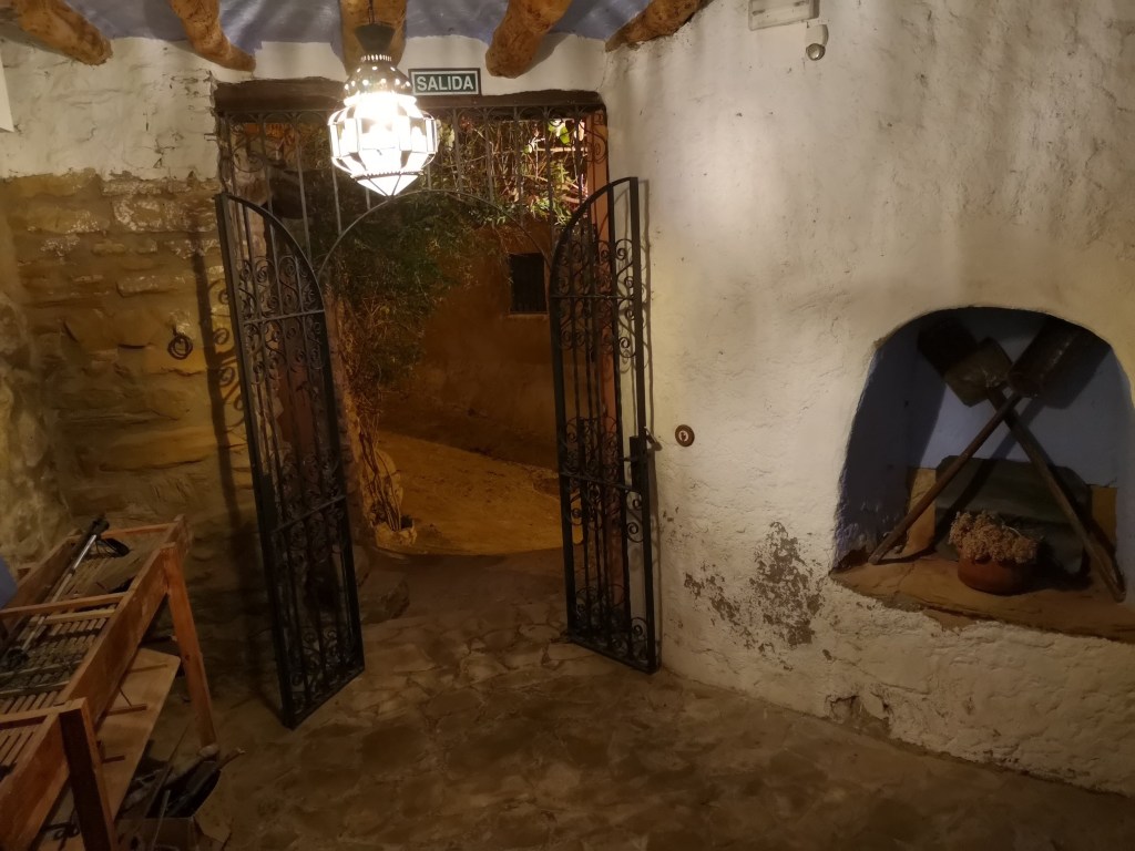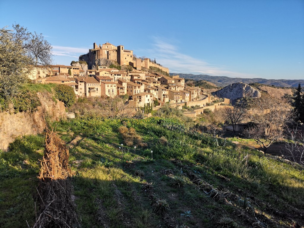 Opstigningen mod byen var pænt hård, vandet var drukket og nu fik vi varmen. Men hyggeligt var det at gå forbi gedeflokke og buske med sorte oliven på. Vi sluttede besøget i kirken, Collegiata Santa Maria la Mayor, med den flotteste udsigt på toppen af Alquézar .