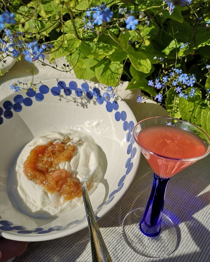 I denne coronatid, som tilfældigvis er faldet sammen med friske rabarber i haven, har jeg derfor af rent sundhedsmæssige hensyn eksperimenteret med rabarber i alle afskygninger. Mest hvor der også indgår en eller anden form for alkohol. Trump siger jo, at vi skal desinficeres indvendigt, så jeg tænker, at jeg slår mange fluer med ét smæk.