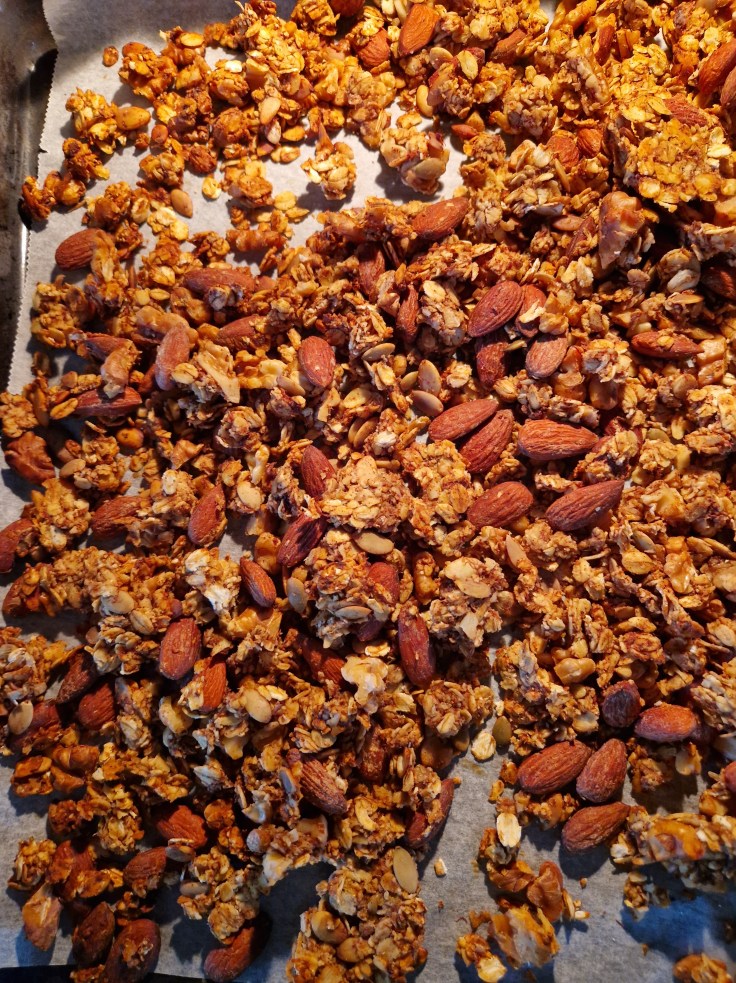 - Bag i 20 minutter, men vend granolaen et par gange undervejs og del den i mindre stykker