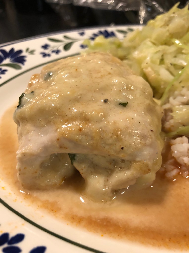 - Rul kyllingestykkerne sammen og læg dem side om side i et ildfast fad med bagepapir i bunden