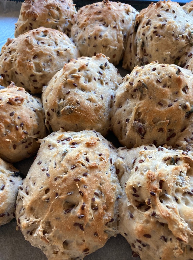 - Lad bollerne efterhæve i 30 min, pensl evt med æggehvide og pynt med kerner eller frø
