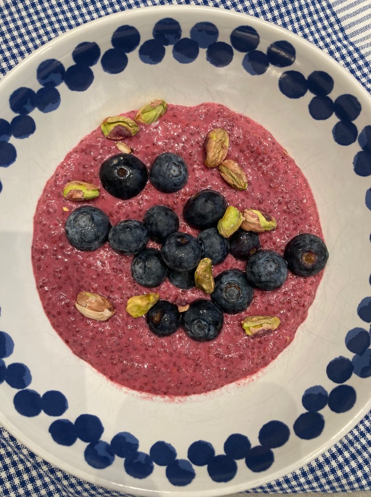 - Vend chiafrøene i og sæt grøden på køl til næste dag