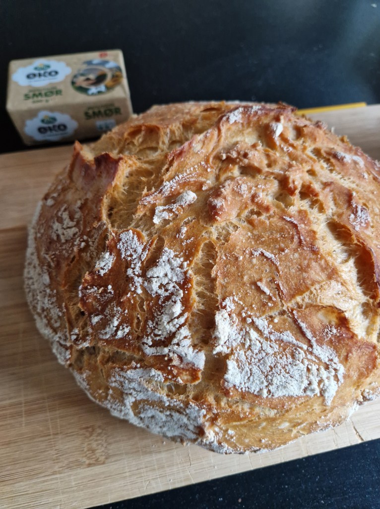 - Tag den varme gryde ud og hæld dejen i og sæt i ovnen med låg på i 30 minutter ved 250 grader